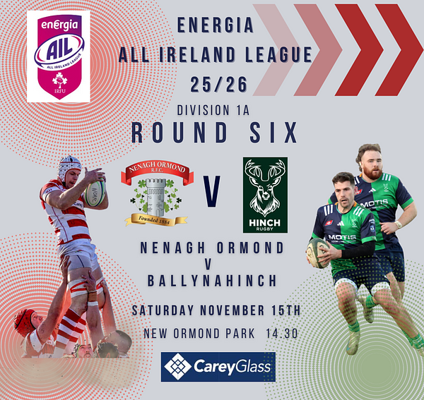Nenagh Ormond entertain Ballynahinch in round 6 of the AIL Division 1A this Saturday (New Ormond Park KO 2.30pm).