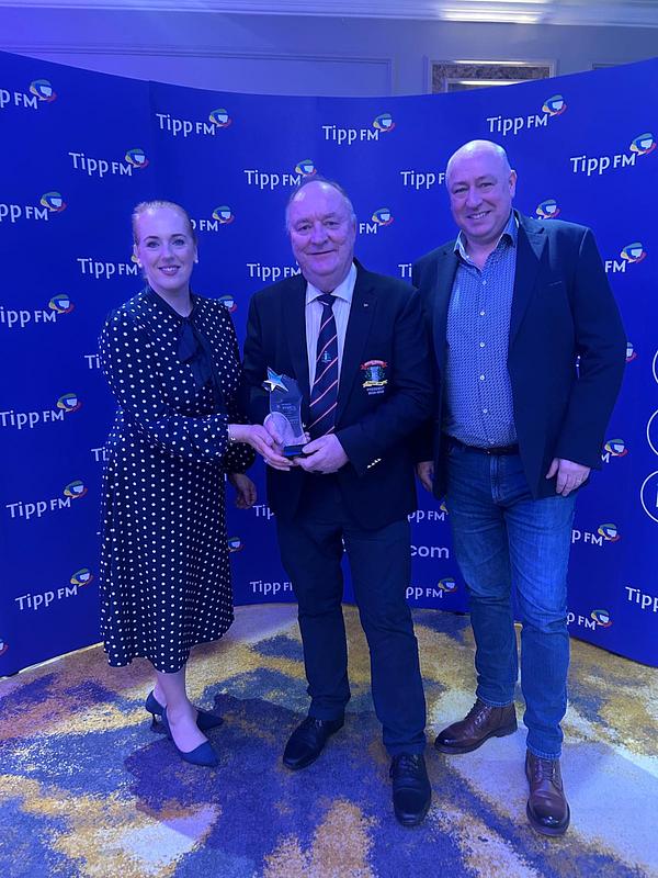 Pictured is Tony receiving the award from Ronan McManamy, Tipp FM CEO and Laura Jones of the Talbot Hotel.